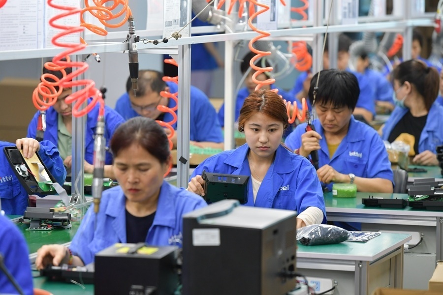2024年5月22日,在位于日照市東港區(qū)新舊動能轉換示范基地的山東比特智能科技股份有限公司新廠區(qū),工人在車間內工作。新華社記者 孟濤 攝