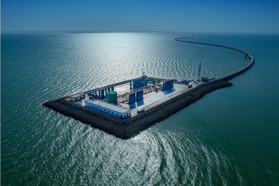 這是勝利油田青東5采油平臺(無人機照片)。新華社發(fā)