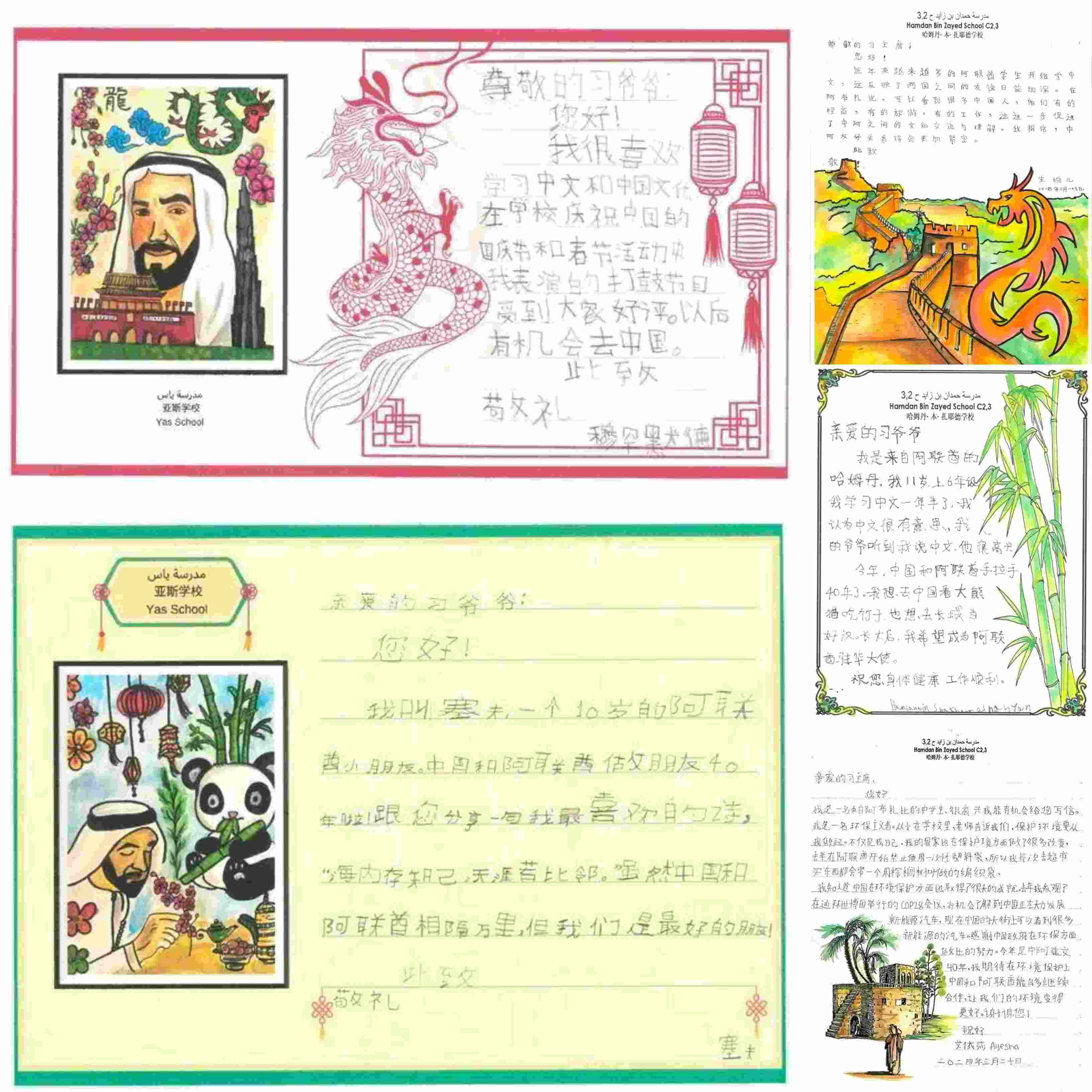 不久前,40封書信從阿聯(lián)酋哈姆丹·本·扎耶德學(xué)校、亞斯學(xué)校寄往北京,收件人是習(xí)近平主席。在這些信箋里,孩子們用中文一筆一畫講述著中阿友好的故事。他們是阿聯(lián)酋中文教學(xué)“百校項(xiàng)目”學(xué)生代表,代表著阿聯(lián)酋171所開設(shè)中文課程的學(xué)校中7.1萬(wàn)名學(xué)習(xí)中文的學(xué)生。