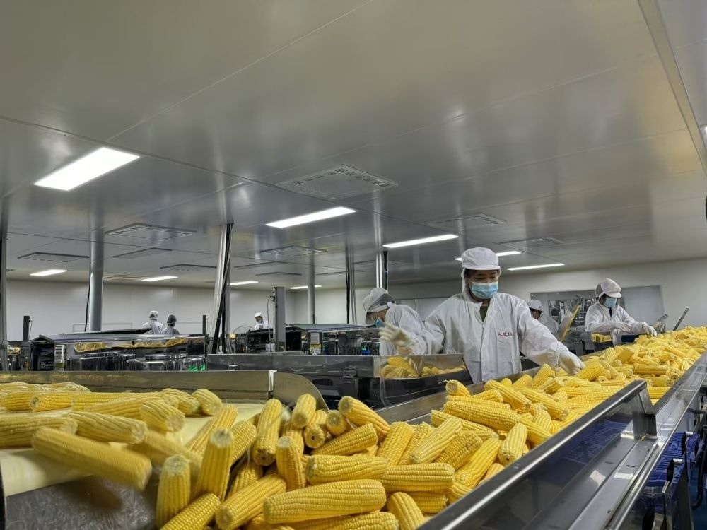 9月19日,永勝農(nóng)機合作社的鮮食玉米加工車間,工人們正在加工鮮食玉米。新華社發(fā) (雷霖攝)