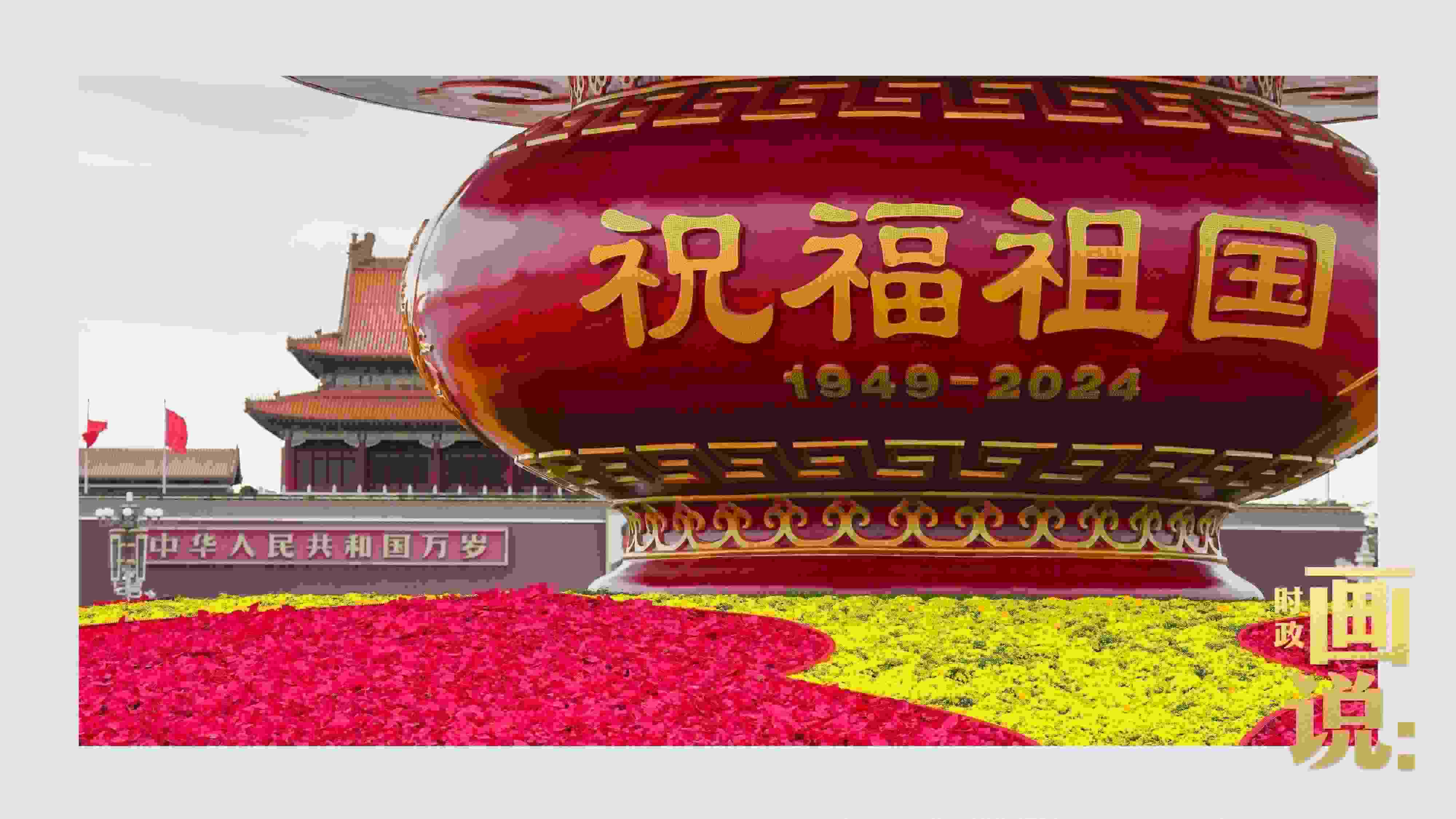 △天安門廣場中央,“祝福祖國”巨型花籃表達著對國家繁榮富強的美好祝福。