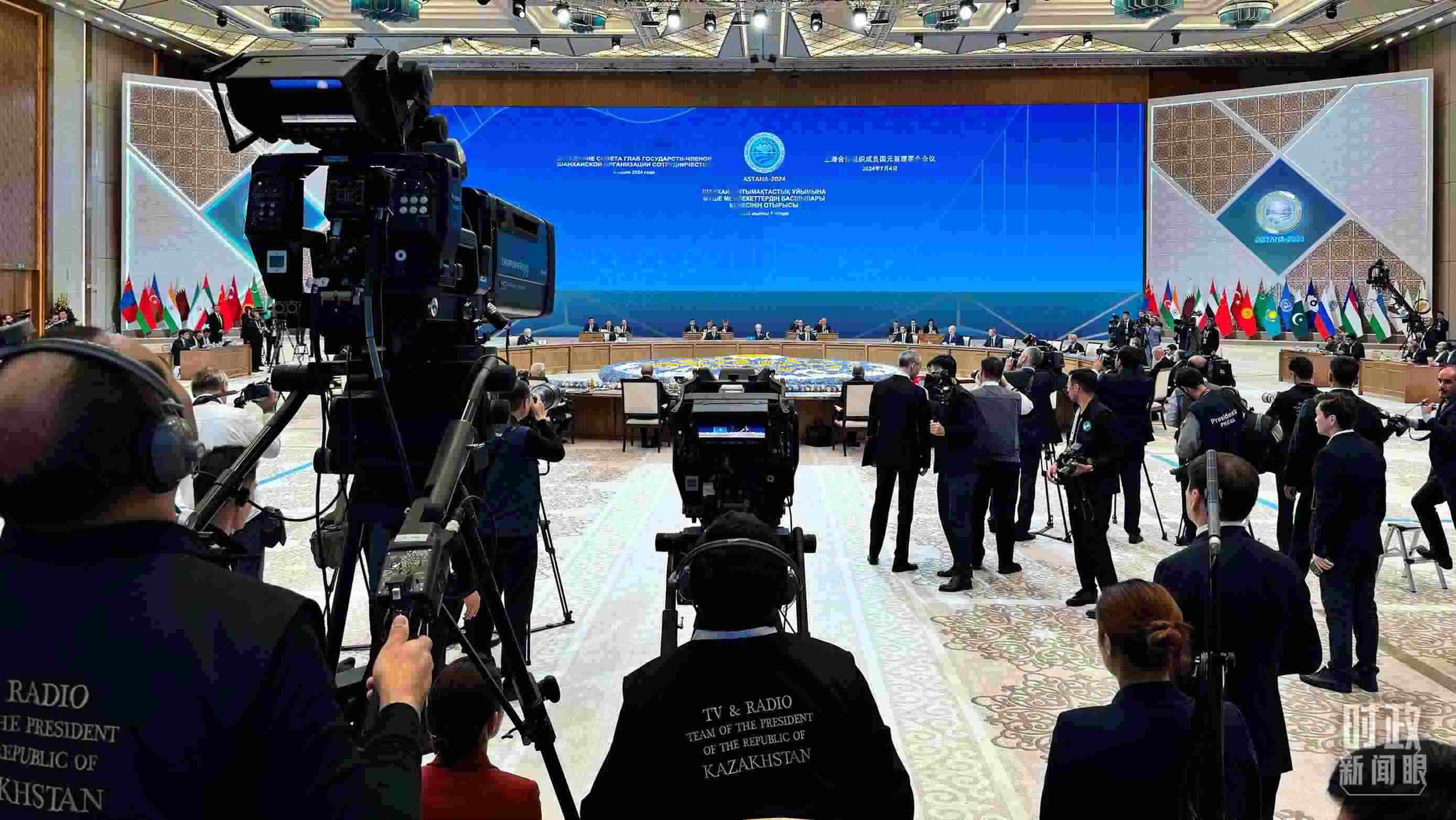 △當(dāng)天下午,“上海合作組織+”阿斯塔納峰會(huì)在這里舉行,這是會(huì)議開始前。(總臺(tái)央視記者程鋮拍攝)
