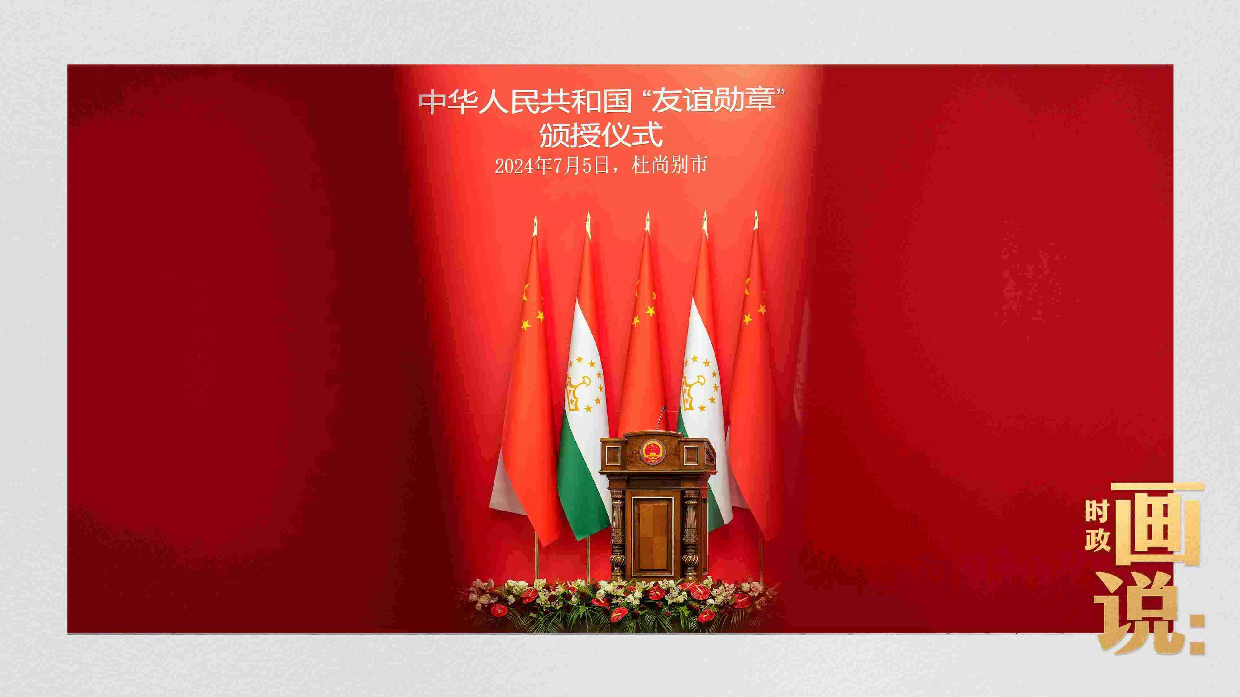 當(dāng)?shù)貢r間7月5日下午,國家主席習(xí)近平在杜尚別總統(tǒng)府向塔吉克斯坦總統(tǒng)拉赫蒙頒授“友誼勛章”。這是中國首次在境外頒授“友誼勛章”,是為表達(dá)中國人民對拉赫蒙總統(tǒng)和塔吉克斯坦人民友好感情作出的特殊安排。