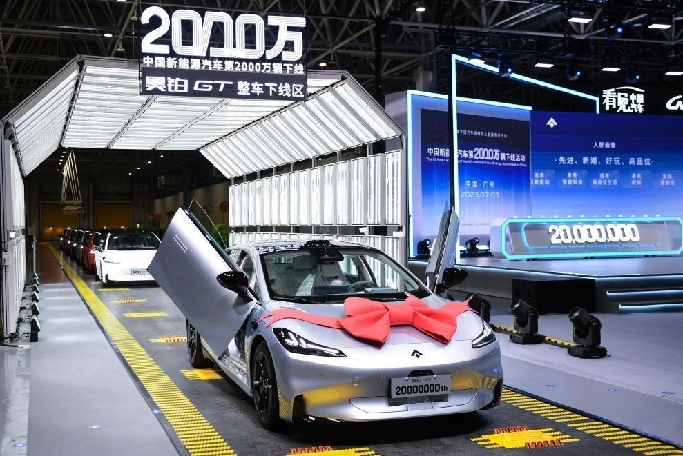 △2023年7月3日,我國(guó)第2000萬(wàn)輛新能源汽車在廣州下線。