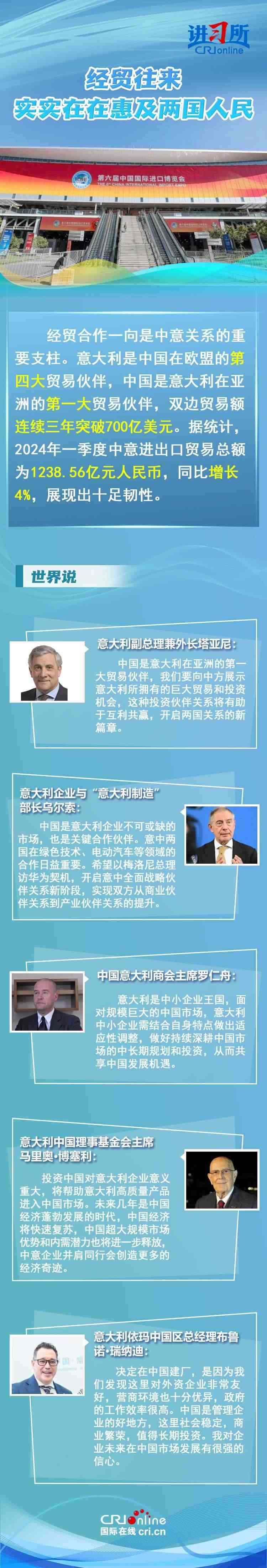 梅洛尼表示,中國(guó)對(duì)意大利而言是一個(gè)極為重要的經(jīng)貿(mào)和文化合作伙伴。意大利各界人士認(rèn)為,中意并肩同行會(huì)創(chuàng)造更多的經(jīng)濟(jì)奇跡,同時(shí)兩國(guó)非常有必要開(kāi)展文明對(duì)話,期待未來(lái)兩國(guó)展開(kāi)更多領(lǐng)域合作,開(kāi)啟全面戰(zhàn)略伙伴關(guān)系新階段。