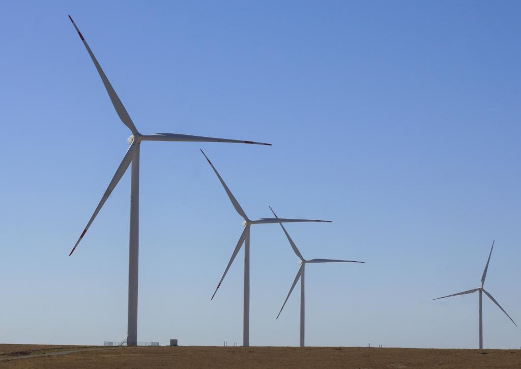 這是2022年9月13日拍攝的哈薩克斯坦札納塔斯風(fēng)電場風(fēng)機。札納塔斯100兆瓦風(fēng)電項目由中國電力國際有限公司和哈薩克斯坦維索爾投資公司共同投資,是中哈合作的中亞最大風(fēng)電項目。新華社發(fā)(德米特里·瓦西連科攝)