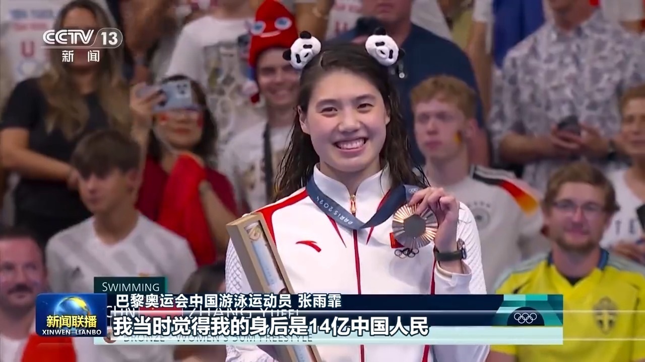 巴黎奧運會中國游泳運動員 張雨霏:沒有想到他當時走在我們跟前,每一名運動員的成績和名字他都記住了,然后就是親切地與我們交談,每個人交談的內容都不一樣。我覺得生在中國真好,特別是在賽場上的時候,我沒有拿到冠軍,但是我看見一面面五星紅旗,他們依然在為我加油吶喊,安慰我,我當時覺得我的身后是14億中國人民。