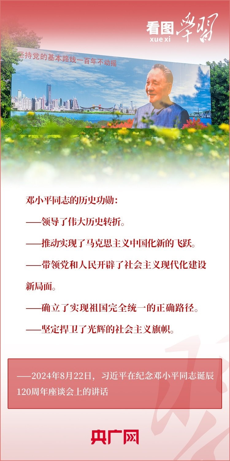 8月22日,習(xí)近平總書記在紀(jì)念鄧小平同志誕辰120周年座談會(huì)上發(fā)表重要講話指出,鄧小平同志的歷史功勛是全方位的、開創(chuàng)性的,對(duì)中國和世界的影響是深刻的、長遠(yuǎn)的??倳洀?qiáng)調(diào),對(duì)鄧小平同志最好的紀(jì)念,就是把他開創(chuàng)的中國特色社會(huì)主義事業(yè)繼續(xù)推向前進(jìn)。我們要緊緊圍繞以中國式現(xiàn)代化全面推進(jìn)強(qiáng)國建設(shè)、民族復(fù)興偉業(yè)這個(gè)中心任務(wù),繼往開來,奮發(fā)進(jìn)取。一起來學(xué)習(xí)!