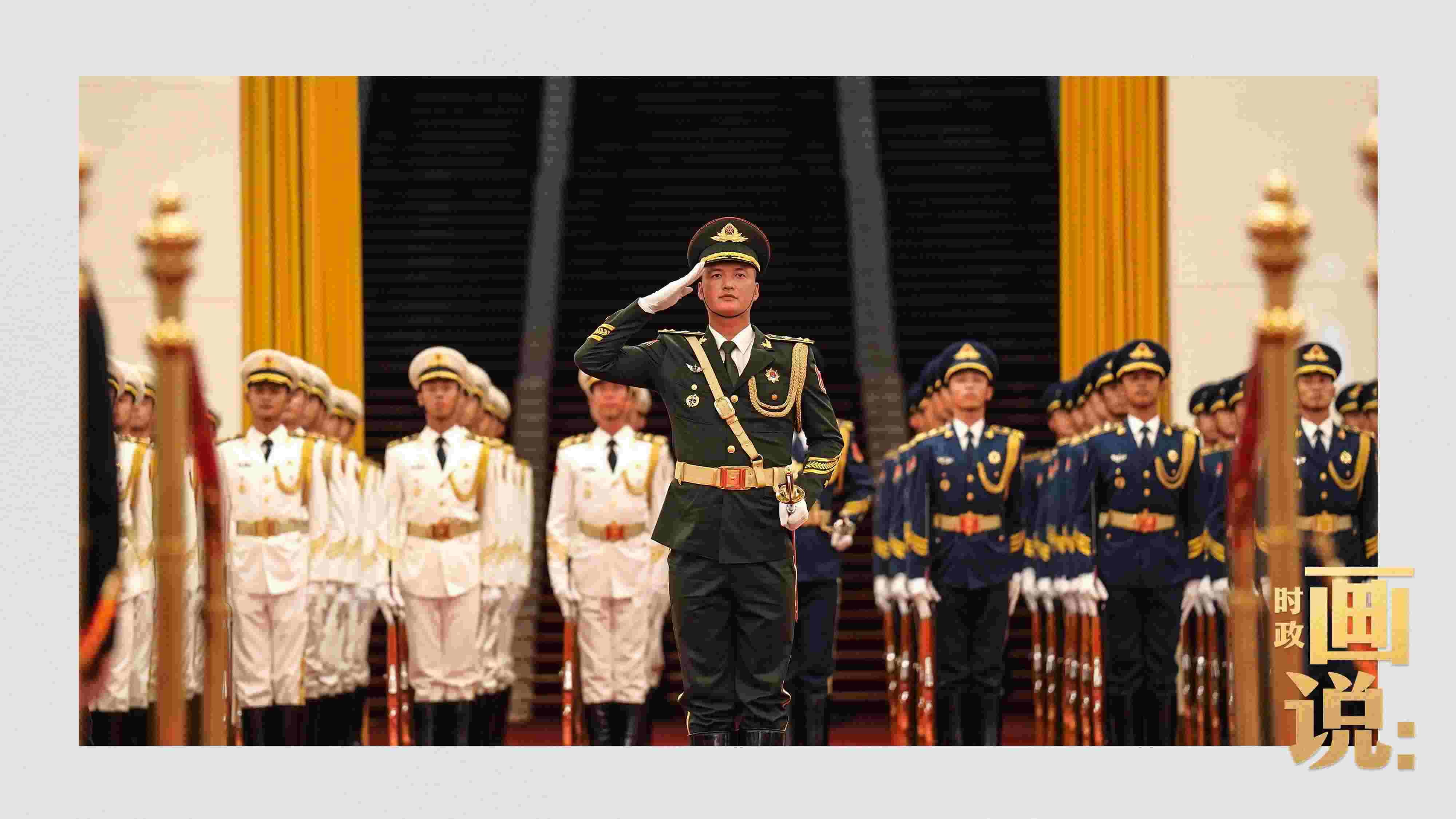 △南非總統(tǒng)拉馬福薩檢閱中國(guó)人民解放軍三軍儀仗隊(duì)。
