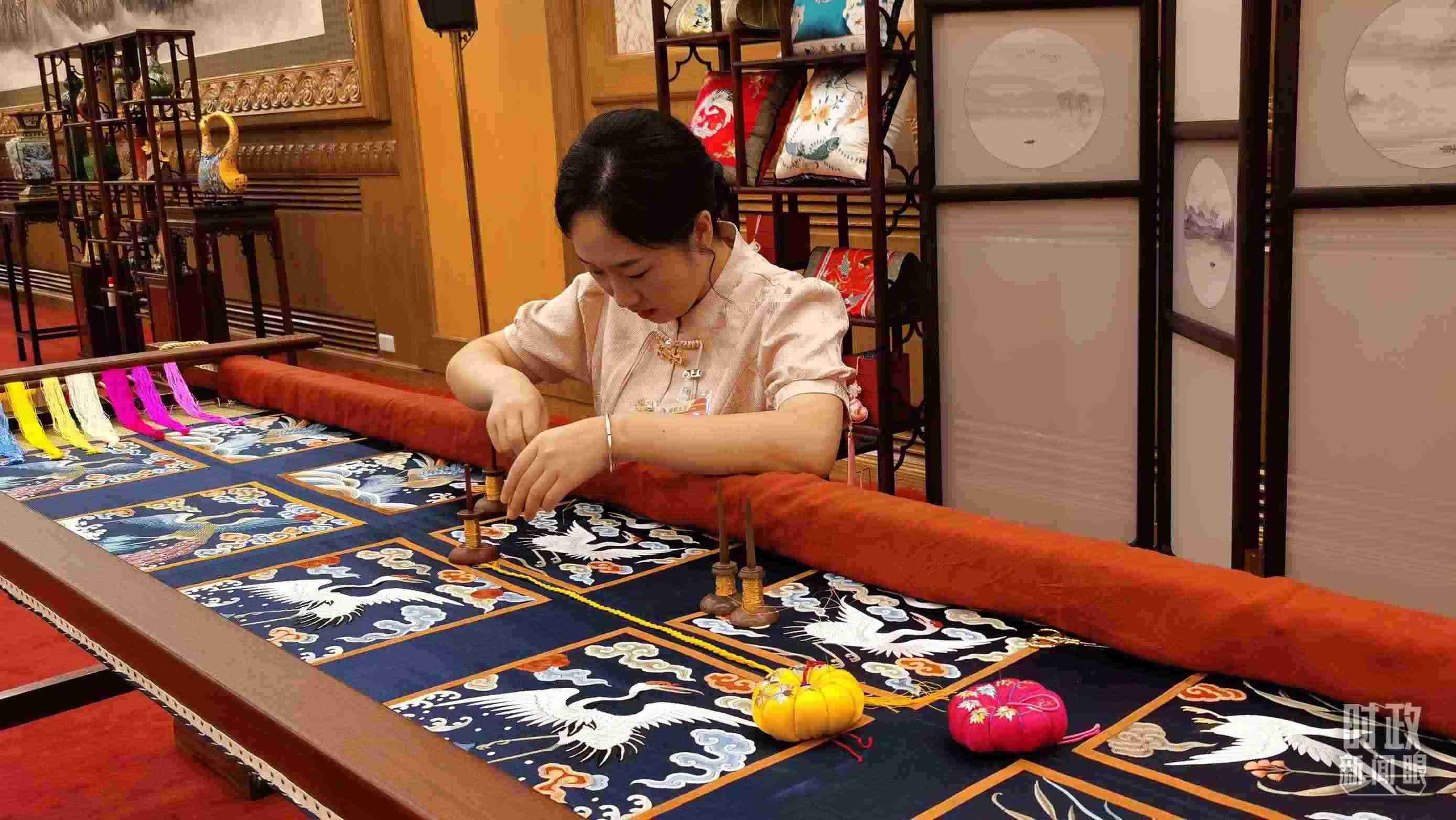 △外賓休息室內的非遺展示。(總臺央視記者王曉東、郭鴻拍攝)
