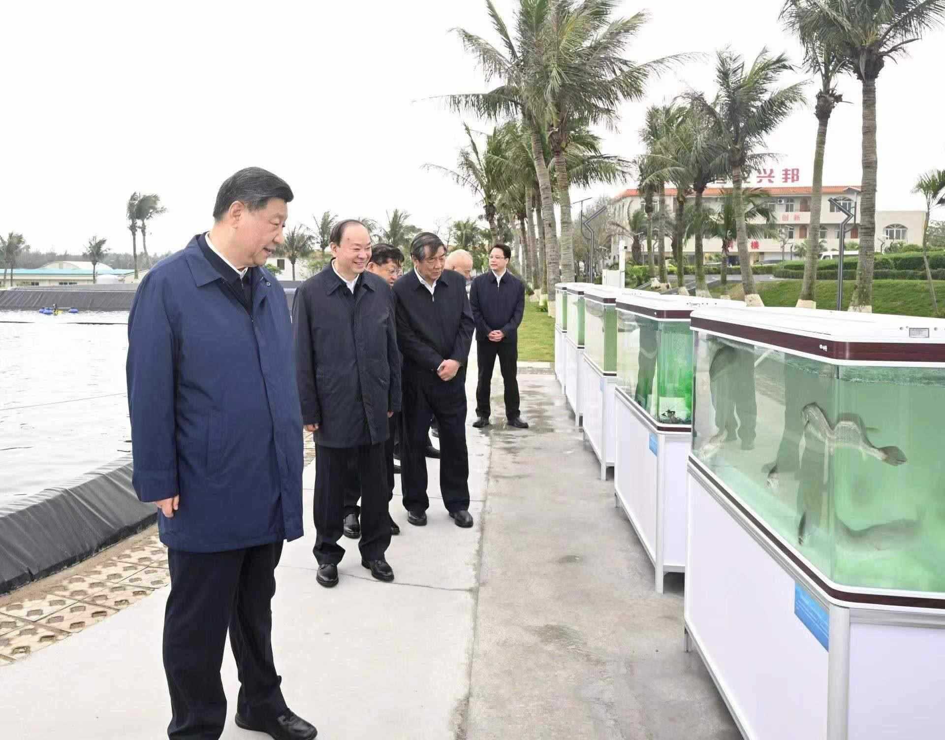 △2023年4月10日,習近平總書記在廣東省湛江市國家863計劃項目海水養(yǎng)殖種子工程南方基地考察調研。