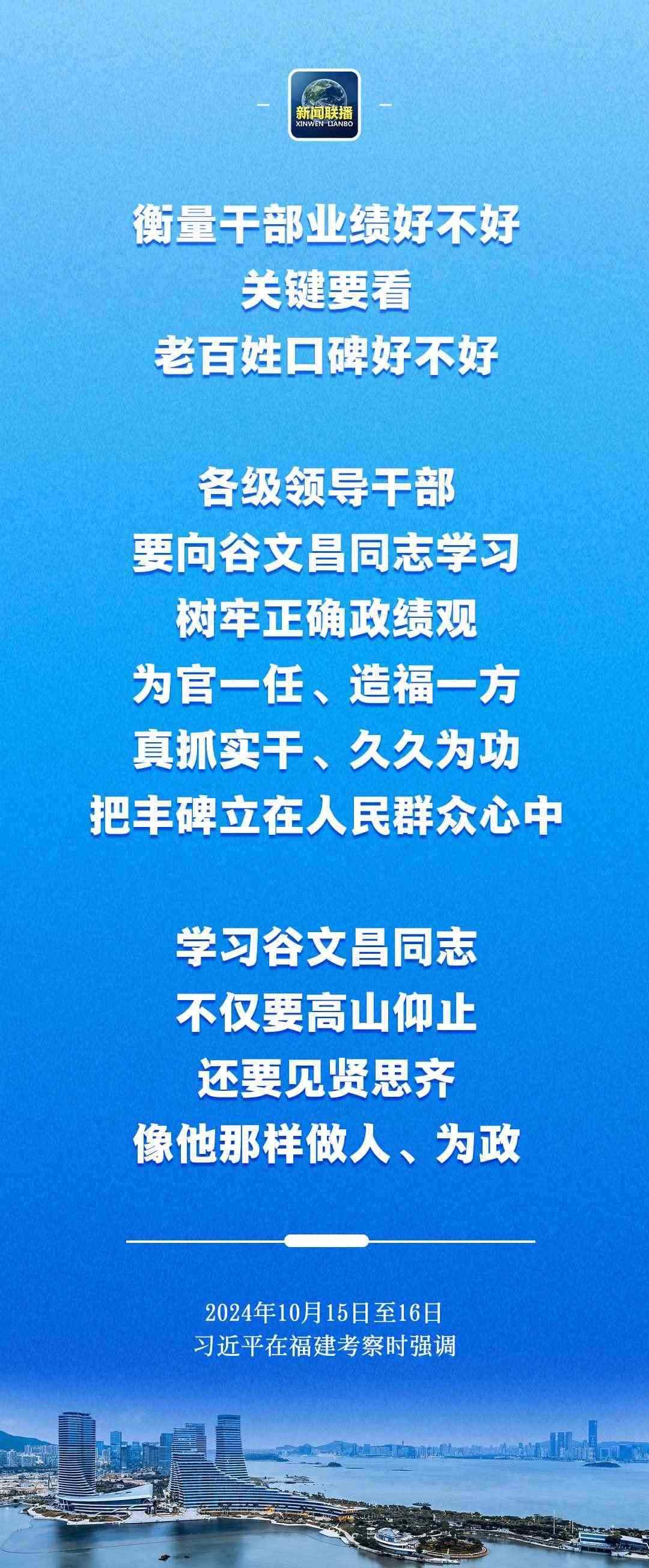 習(xí)近平在谷文昌紀(jì)念館考察時指出,衡量干部業(yè)績好不好,關(guān)鍵要看老百姓口碑好不好。各級領(lǐng)導(dǎo)干部要向谷文昌同志學(xué)習(xí),樹牢正確政績觀,為官一任、造福一方,真抓實(shí)干、久久為功,把豐碑立在人民群眾心中。學(xué)習(xí)谷文昌同志,不僅要高山仰止,還要見賢思齊,像他那樣做人、為政。