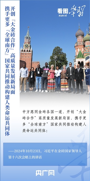 當(dāng)?shù)貢r(shí)間10月23日,國(guó)家主席習(xí)近平在俄羅斯喀山出席金磚國(guó)家領(lǐng)導(dǎo)人第十六次會(huì)晤并發(fā)表重要講話。習(xí)主席深刻闡述推動(dòng)“大金磚合作”高質(zhì)量發(fā)展的中國(guó)主張,就金磚大家庭發(fā)展合作提出五點(diǎn)務(wù)實(shí)舉措,表達(dá)了中方愿同金磚各國(guó)一道,攜手更多“全球南方”國(guó)家共同推動(dòng)構(gòu)建人類命運(yùn)共同體的真誠(chéng)愿望。一起來(lái)學(xué)習(xí)!