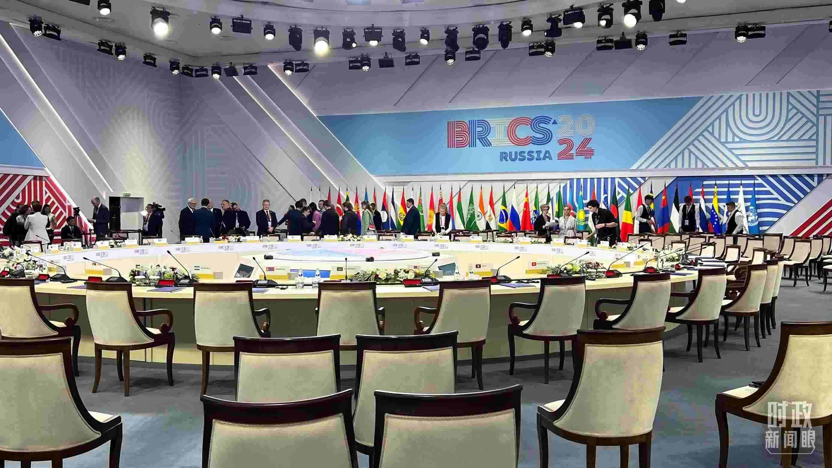 △今年“金磚+”領(lǐng)導(dǎo)人對話會(huì)在喀山會(huì)展中心舉行,這是對話會(huì)開始前的現(xiàn)場。(總臺(tái)央視記者程鋮拍攝)