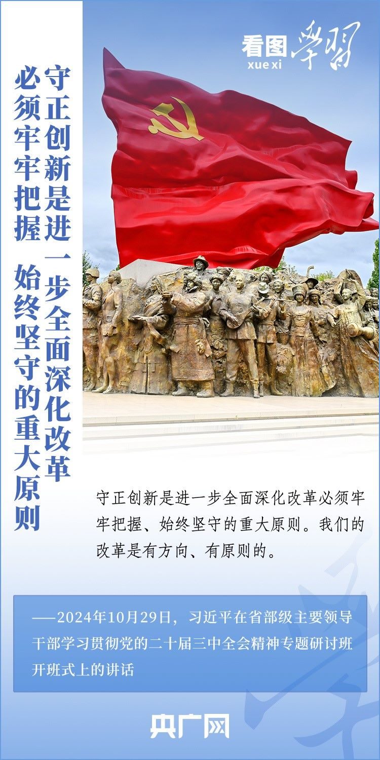 改革只有進(jìn)行時(shí),沒(méi)有完成時(shí)。10月29日,省部級(jí)主要領(lǐng)導(dǎo)干部學(xué)習(xí)貫徹黨的二十屆三中全會(huì)精神專題研討班在中央黨校(國(guó)家行政學(xué)院)開(kāi)班。習(xí)近平總書(shū)記發(fā)表重要講話,就進(jìn)一步全面深化改革的一系列重大問(wèn)題進(jìn)行深刻闡釋,強(qiáng)調(diào)要牢牢把握、始終堅(jiān)守“守正創(chuàng)新”這一重大原則,把握好“四對(duì)關(guān)系”,奮力打開(kāi)改革發(fā)展新天地。一起來(lái)學(xué)習(xí)!