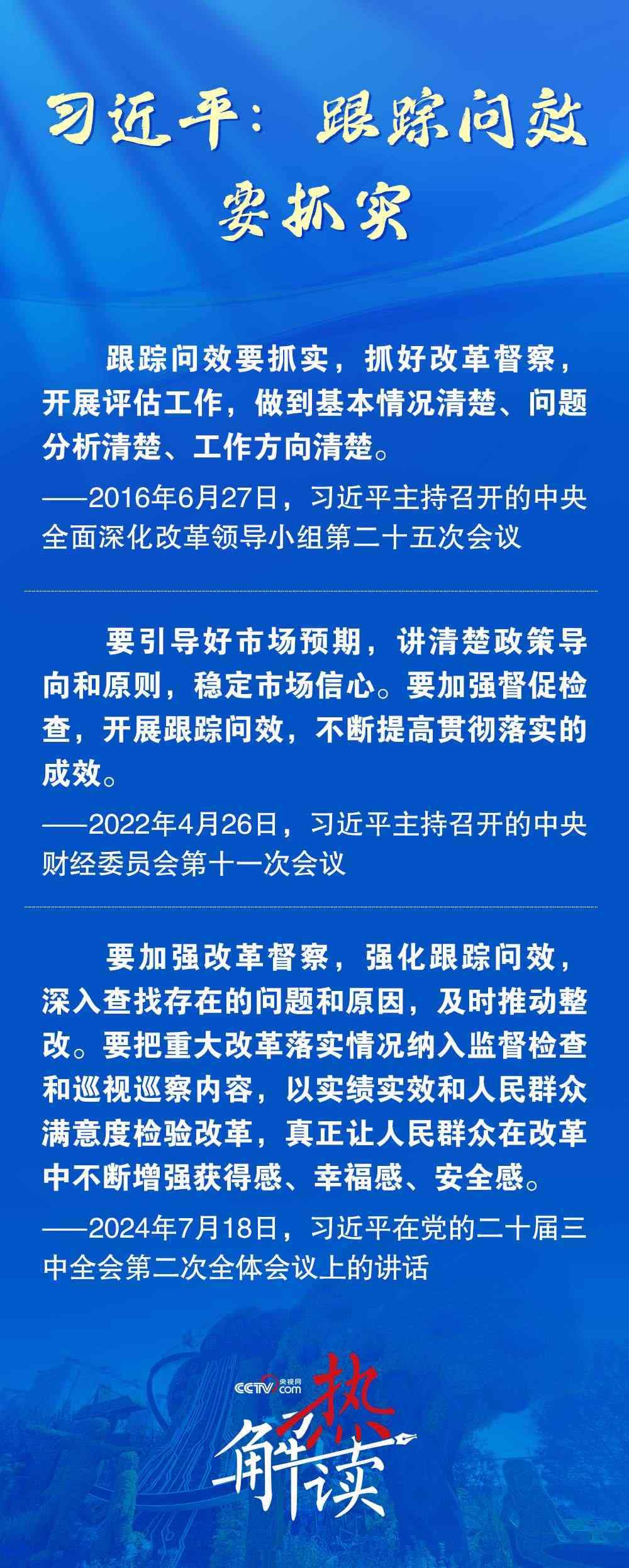 今年7月,在黨的二十屆三中全會(huì)第二次全體會(huì)議上,習(xí)近平總書(shū)記進(jìn)一步提出,要強(qiáng)化跟蹤問(wèn)效,深入查找存在的問(wèn)題和原因,及時(shí)推動(dòng)整改。