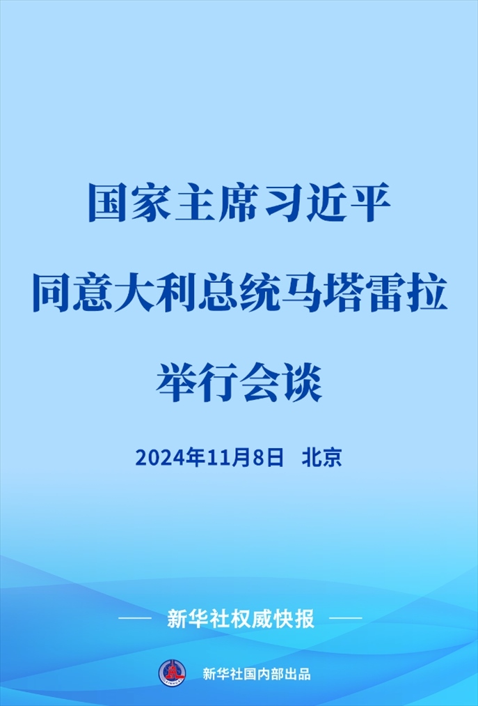 11月8日下午,國(guó)家主席習(xí)近平在北京人民大會(huì)堂同來(lái)華進(jìn)行國(guó)事訪(fǎng)問(wèn)的意大利總統(tǒng)馬塔雷拉舉行會(huì)談。