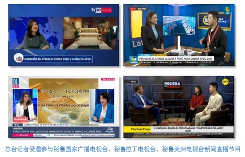 中央廣播電視總臺記者受邀參與秘魯國家廣播電視臺、秘魯拉丁電視臺和當(dāng)?shù)厥找暵首罡叩拿佤斆乐揠娨暸_新聞直播節(jié)目,介紹《平“語”近人——習(xí)近平喜歡的典故》第三季(西班牙語版)內(nèi)容,帶領(lǐng)當(dāng)?shù)厥鼙姼形蛄?xí)近平主席用典中蘊(yùn)含的中國智慧。