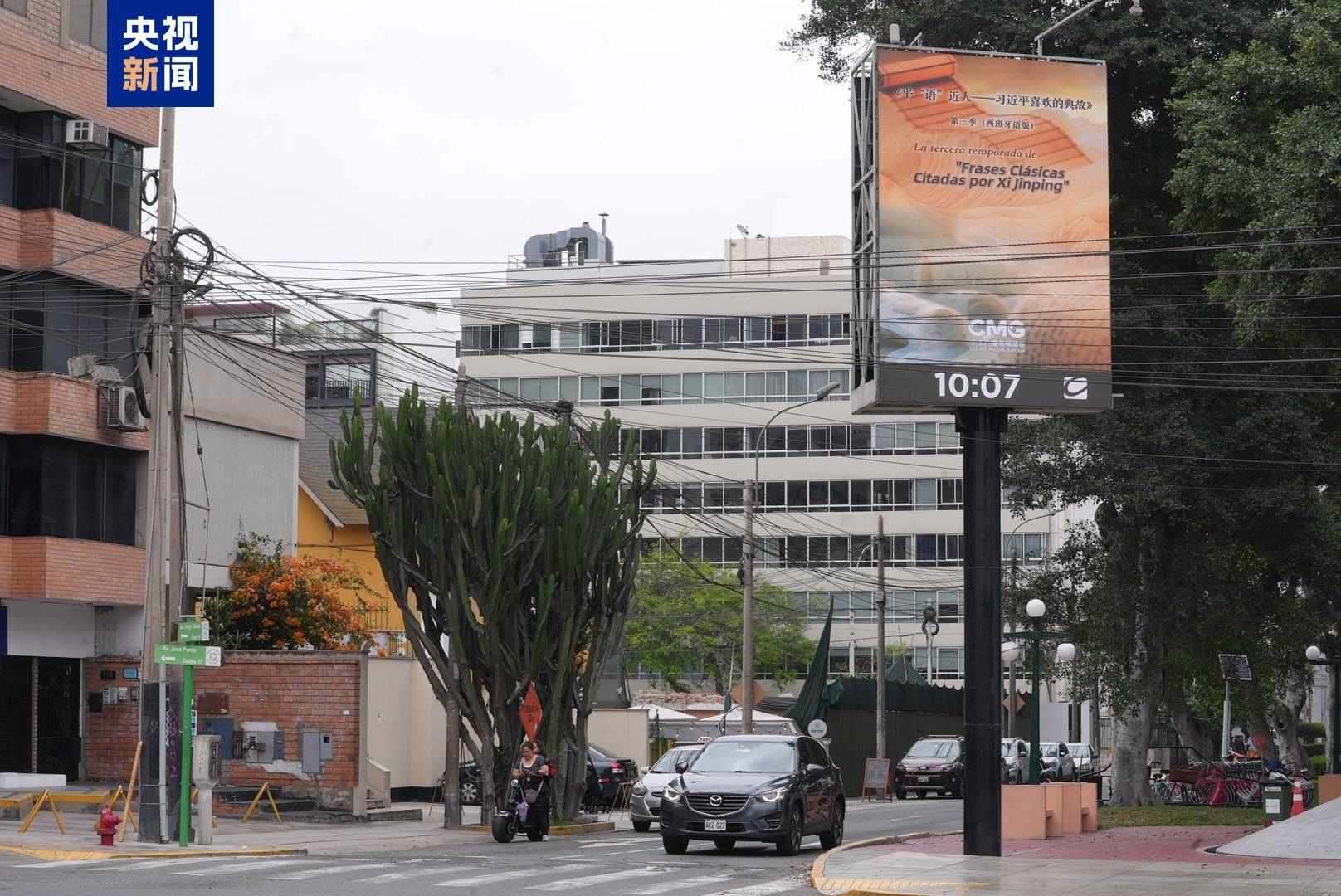 11月14日起,《平“語”近人——習(xí)近平喜歡的典故》第三季(西班牙語版)宣傳片在利馬地標(biāo)建筑戶外大屏、利馬國際機(jī)場至市中心沿路戶外大屏滾動播放。秘魯各界人士對節(jié)目落地播出表示期待,認(rèn)為這將為秘魯民眾了解中國領(lǐng)導(dǎo)人治國理政思想、領(lǐng)略中國式現(xiàn)代化的壯美宏闊打開思想之窗。