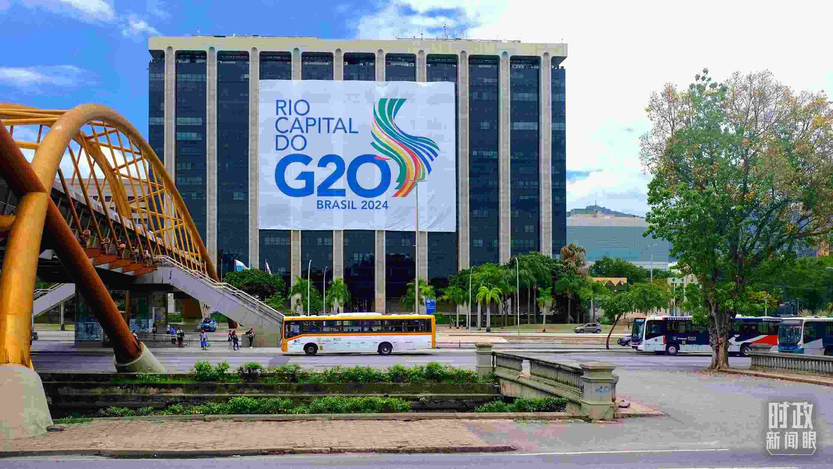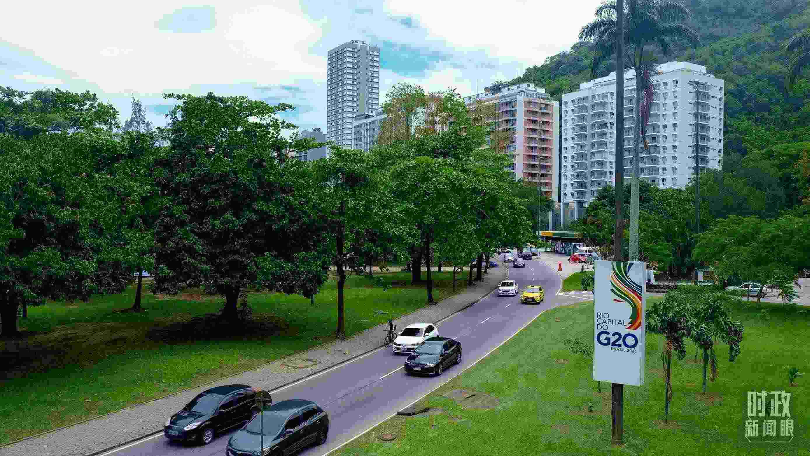 △巴西里約熱內(nèi)盧街頭的G20標(biāo)識(shí)。(總臺(tái)央視記者曹亞星拍攝)
