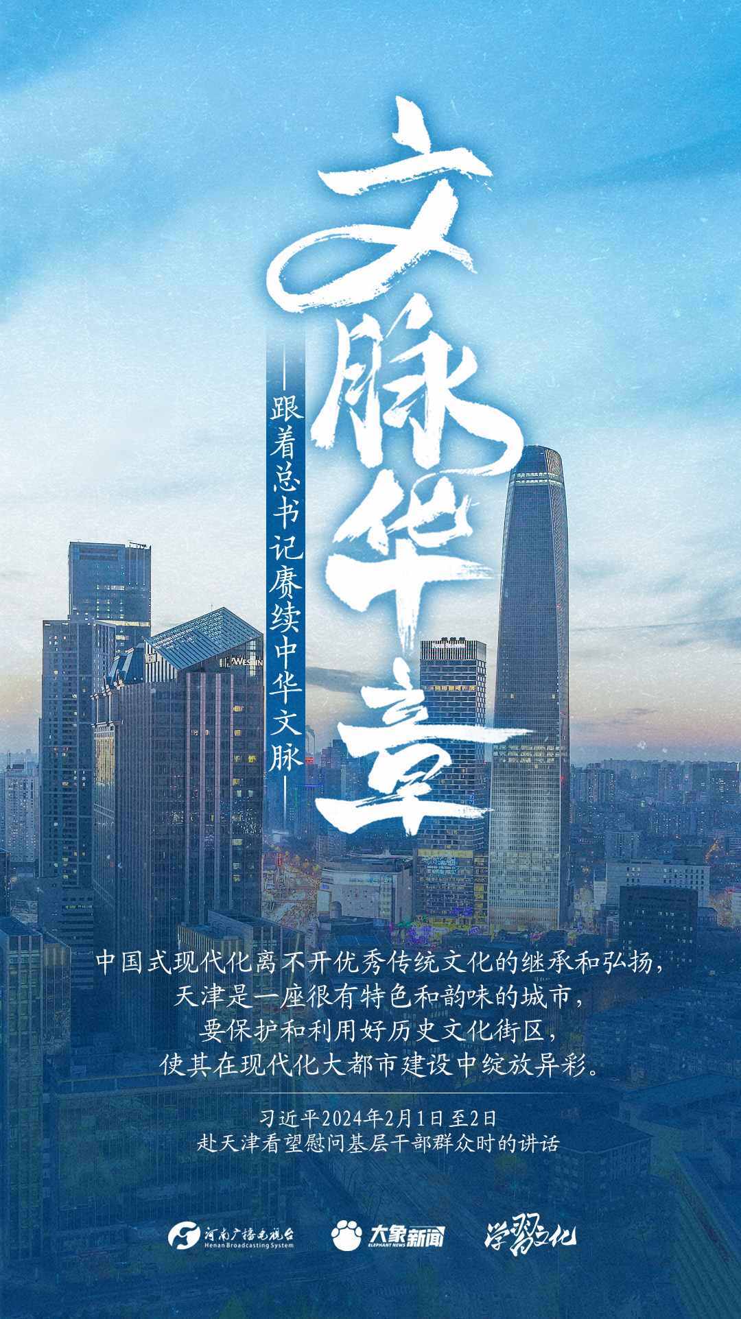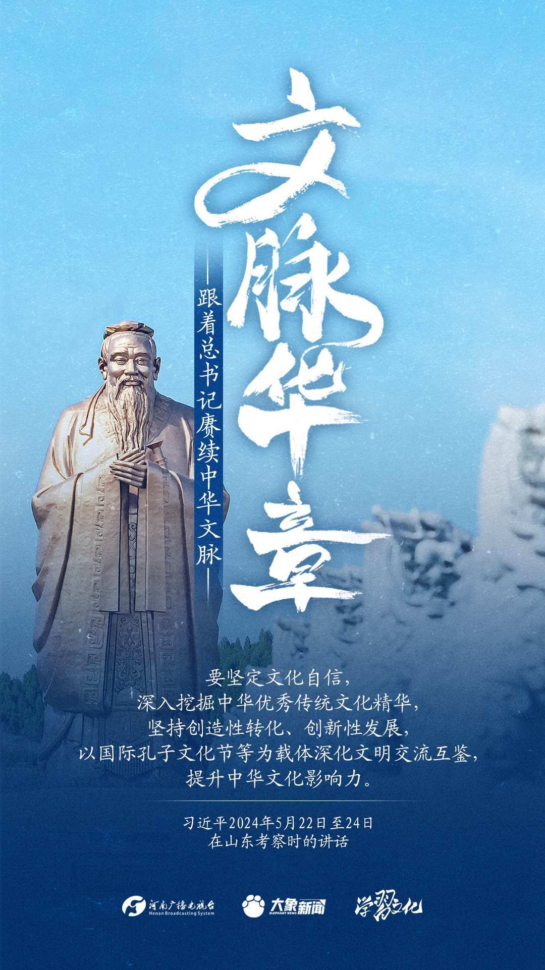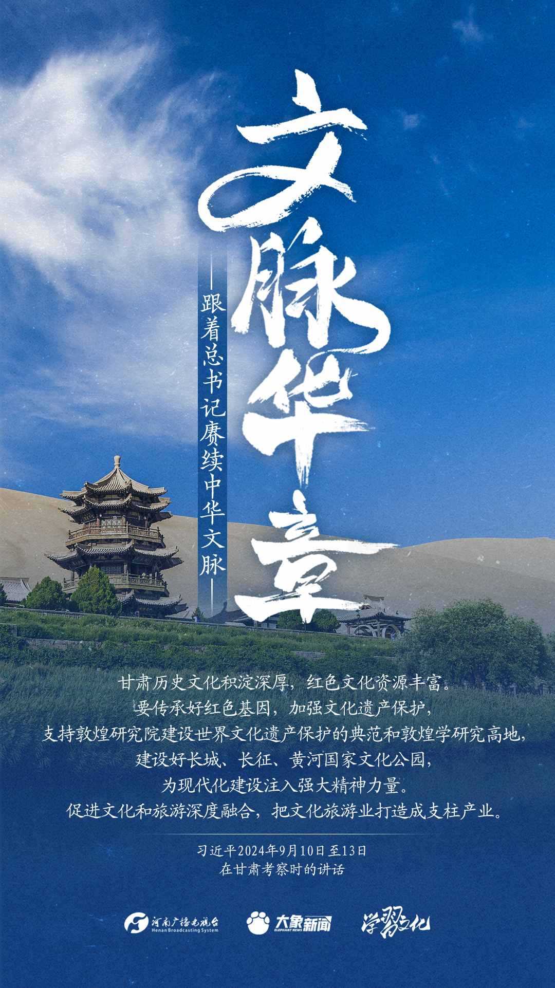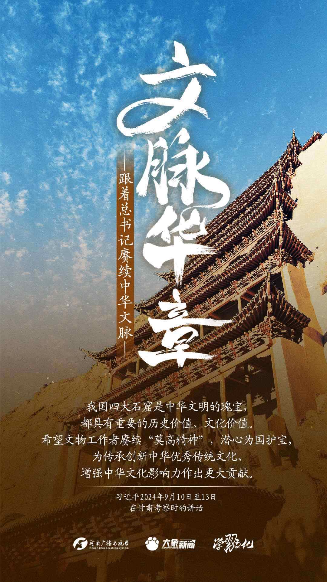 習(xí)近平總書記高度重視中華優(yōu)秀傳統(tǒng)文化的繼承和弘揚(yáng)。2024年,總書記一如既往,念茲在茲。在赴地方考察、主持召開重要會議等眾多場合,多次對傳承發(fā)展中華優(yōu)秀傳統(tǒng)文化作出重要講話重要指示。大象新聞邀您一起,跟著總書記賡續(xù)中華文脈,推動(dòng)中華優(yōu)秀傳統(tǒng)文化創(chuàng)造性轉(zhuǎn)化和創(chuàng)新性發(fā)展,在新的起點(diǎn)上繼續(xù)推動(dòng)文化繁榮、建設(shè)文化強(qiáng)國、建設(shè)中華民族現(xiàn)代文明。