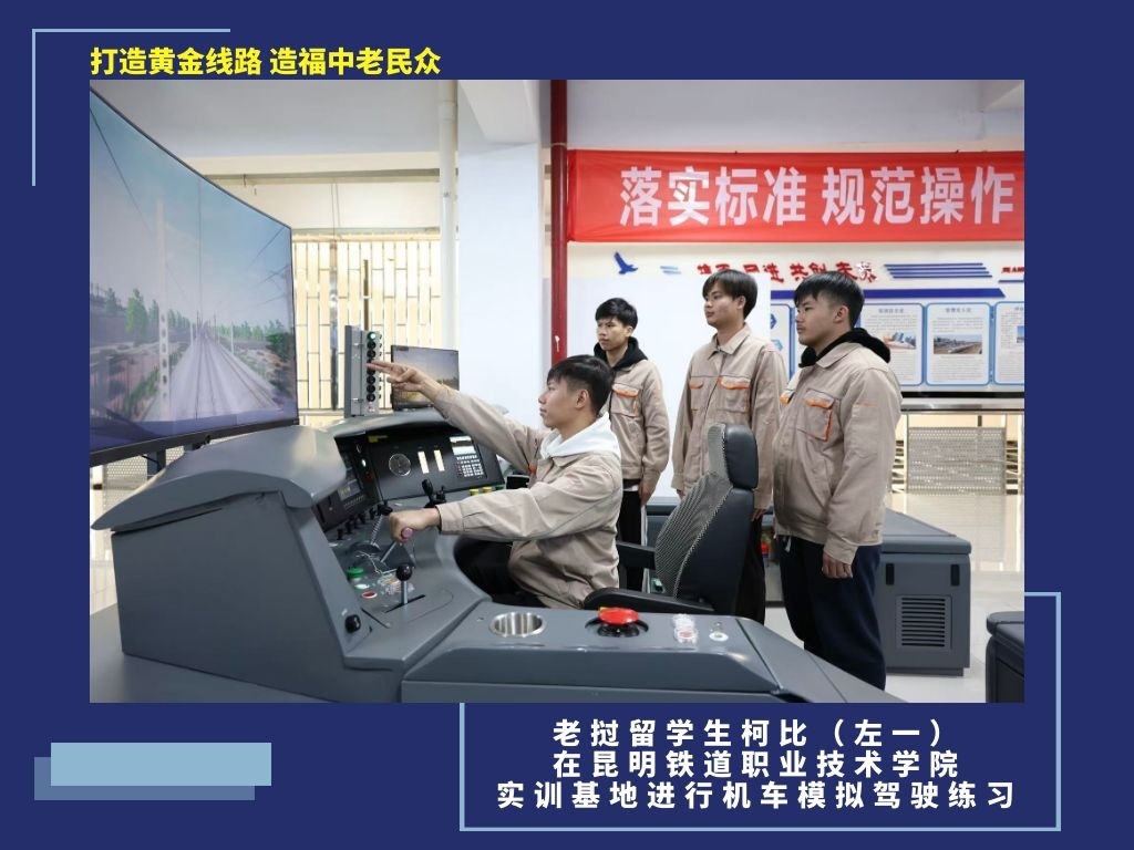 “在中老鐵路通車前,老撾境內(nèi)沒有標(biāo)準(zhǔn)軌鐵路,我對火車的認(rèn)知幾乎都來自電視和網(wǎng)絡(luò),課本中提到的各種火車零部件術(shù)語之前沒聽過,也沒見過?!崩蠐肓魧W(xué)生柯比說,跟老師寶貴的交流,不僅極大地豐富了自己的專業(yè)知識,還點燃了興趣,希望畢業(yè)后能成為一名鐵路員工,服務(wù)中老鐵路。