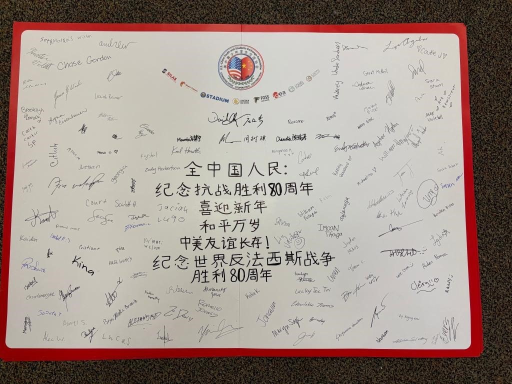 2025年是中國(guó)人民抗日戰(zhàn)爭(zhēng)和世界反法西斯戰(zhàn)爭(zhēng)勝利80周年。美國(guó)華盛頓州中學(xué)師生代表在賀卡中致敬歷史:“紀(jì)念抗戰(zhàn)勝利80周年,紀(jì)念世界反法西斯戰(zhàn)爭(zhēng)勝利80周年。”習(xí)近平主席夫婦在回贈(zèng)賀卡中說(shuō),第二次世界大戰(zhàn)期間,中美共同為和平和正義而戰(zhàn),兩國(guó)人民的友誼經(jīng)受了血與火的考驗(yàn),歷久彌新。