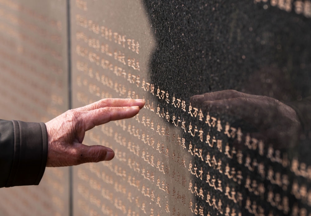 這里鮮紅底色閃耀??姑涝沂苛陥@長(zhǎng)眠著邱少云、黃繼光等家喻戶(hù)曉的志愿軍烈士。