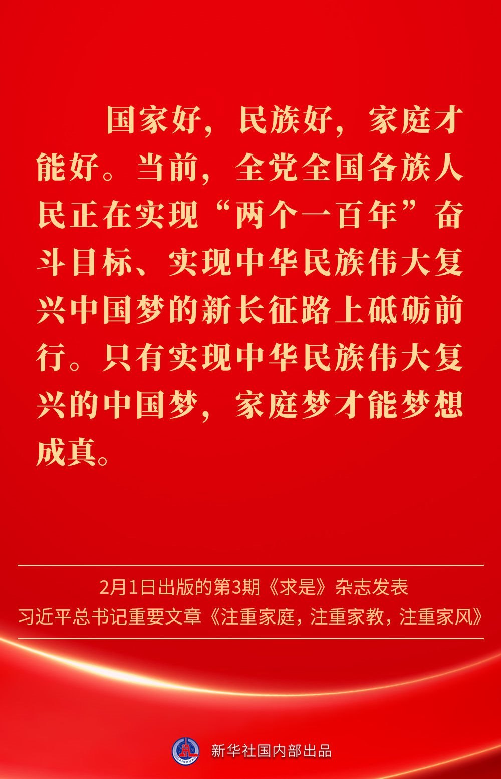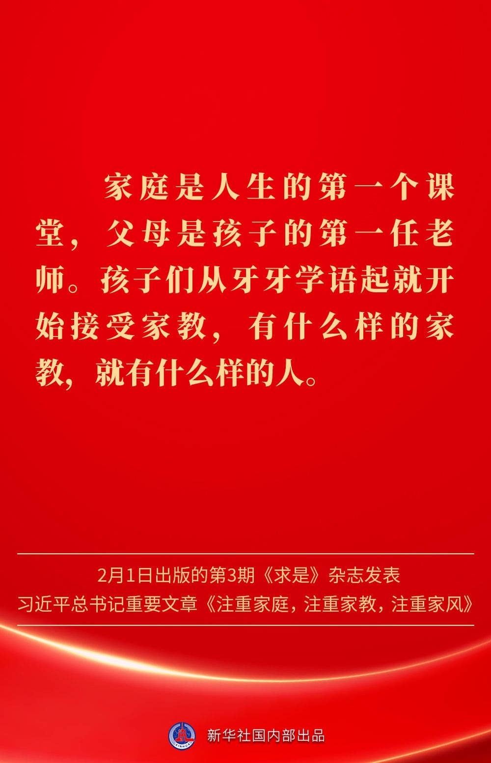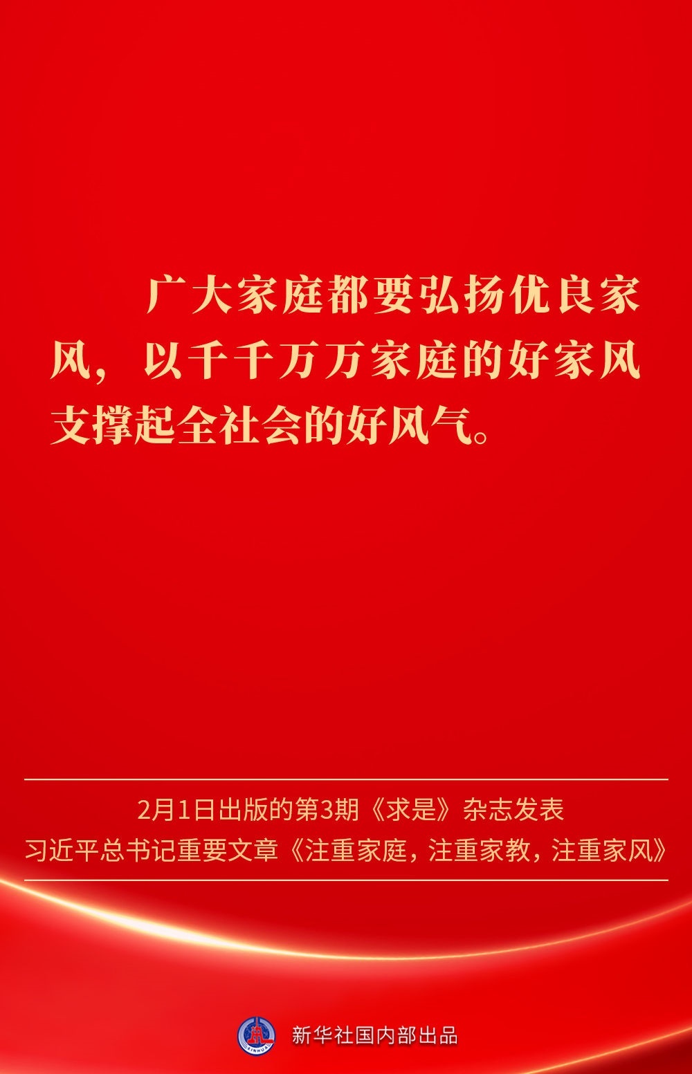萬家團圓共慶新春佳節(jié)之際,2月1日出版的第3期《求是》雜志發(fā)表習近平總書記重要文章《注重家庭,注重家教,注重家風》。為什么要注重家庭、家教、家風?如何做好家庭文明建設?習近平總書記這樣闡述——