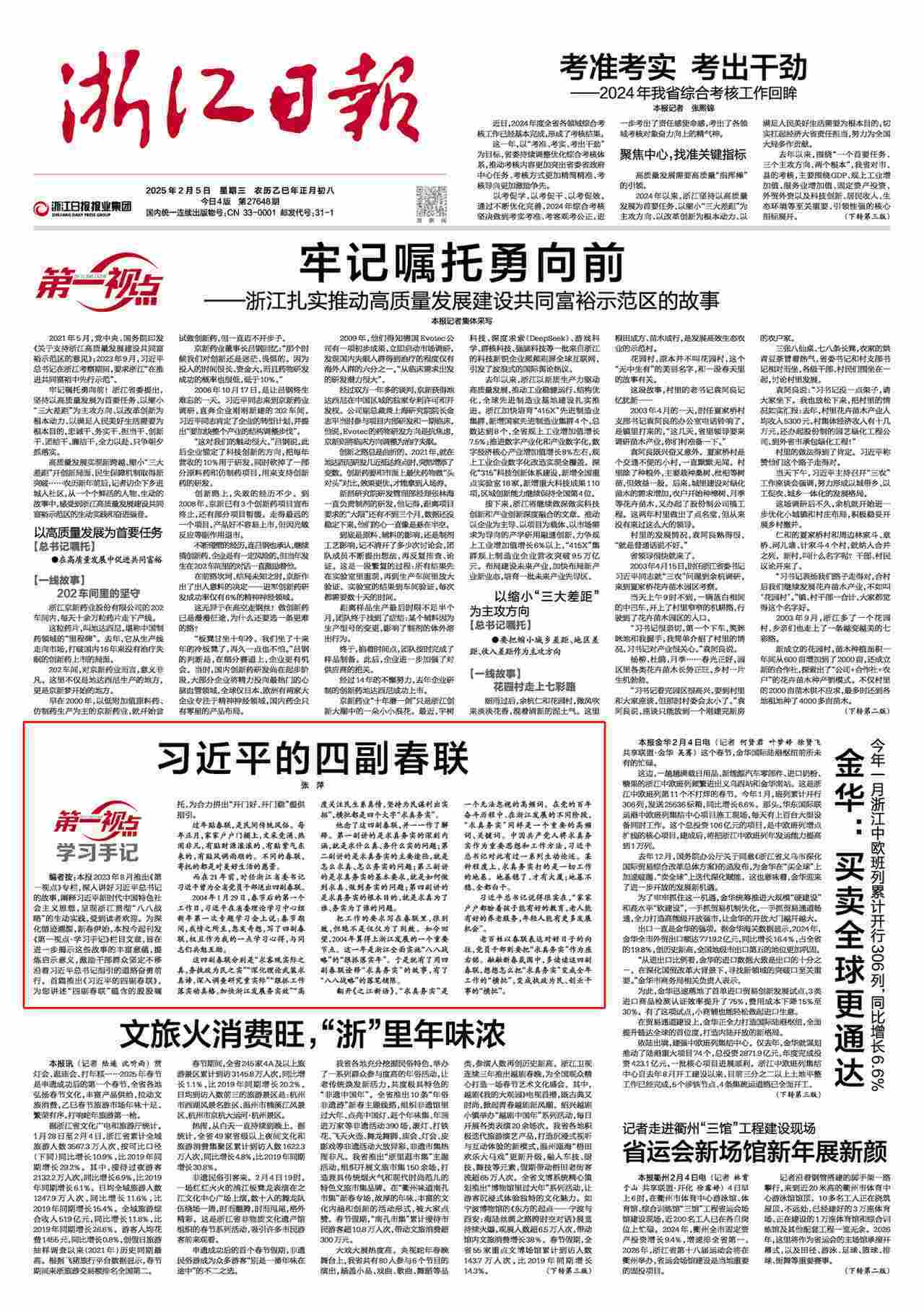 把工作的要求寫在春聯(lián)里,很別致,但絕不是僅僅為了別致。如今回望,2004年算得上浙江發(fā)展的一個重要節(jié)點。這一年是浙江全面實施“八八戰(zhàn)略”的“狠抓落實年”。于是就有了用四副春聯(lián)詮釋“求真務(wù)實”的故事,有了“八八戰(zhàn)略”的落筆鋪陳。