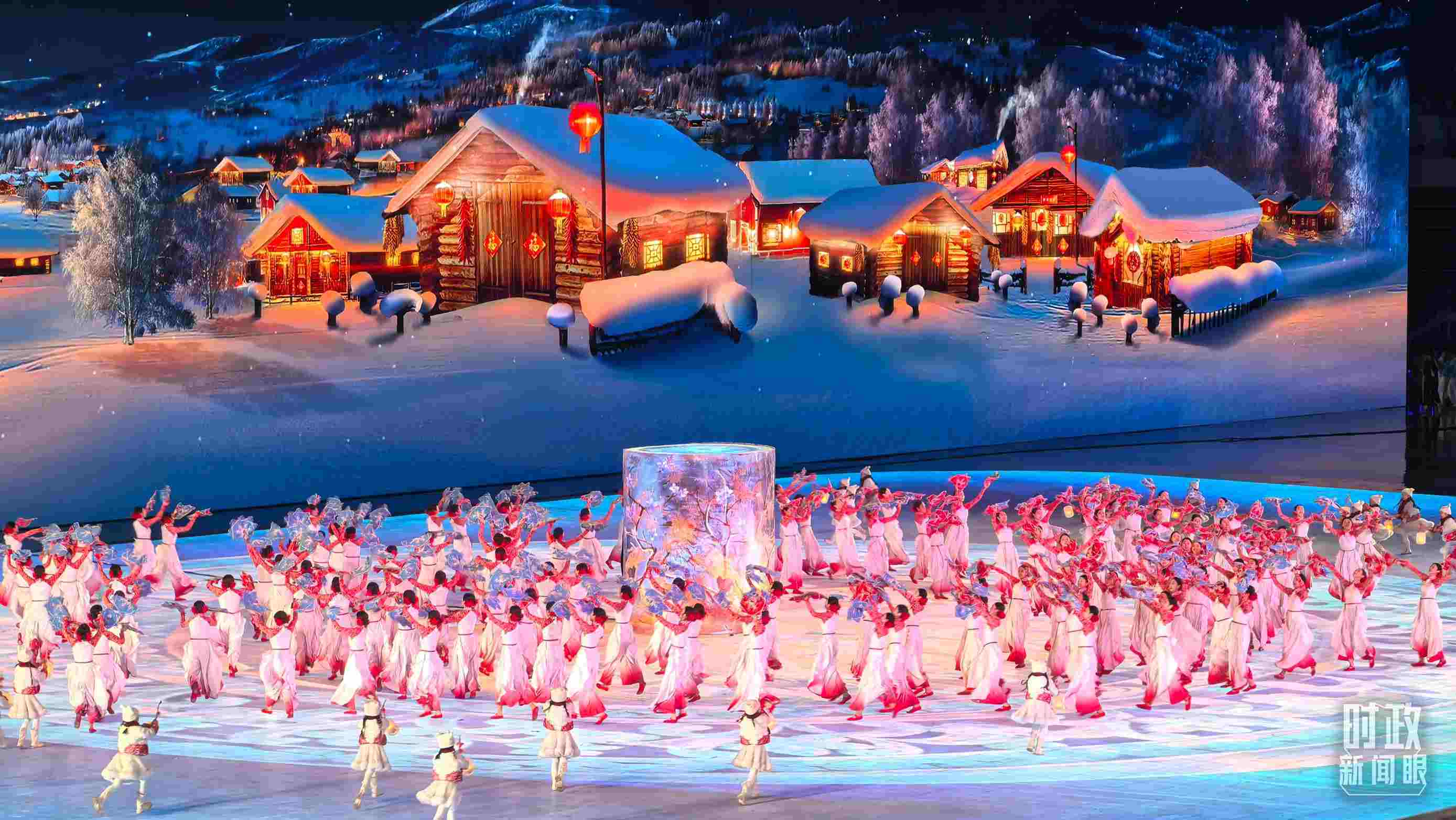 文藝表演分為上篇《熾熱冰雪》、中篇《燃情時(shí)速》、下篇《山高水長》,通過《長歌頌冰河》《榮光耀未來》《馳騁天地間》《璀璨嘉年華》《攜手情久長》《萬里共和鳴》等節(jié)目,展現(xiàn)化“極寒”為“極美”“極燃”“極暖”的意蘊(yùn)。