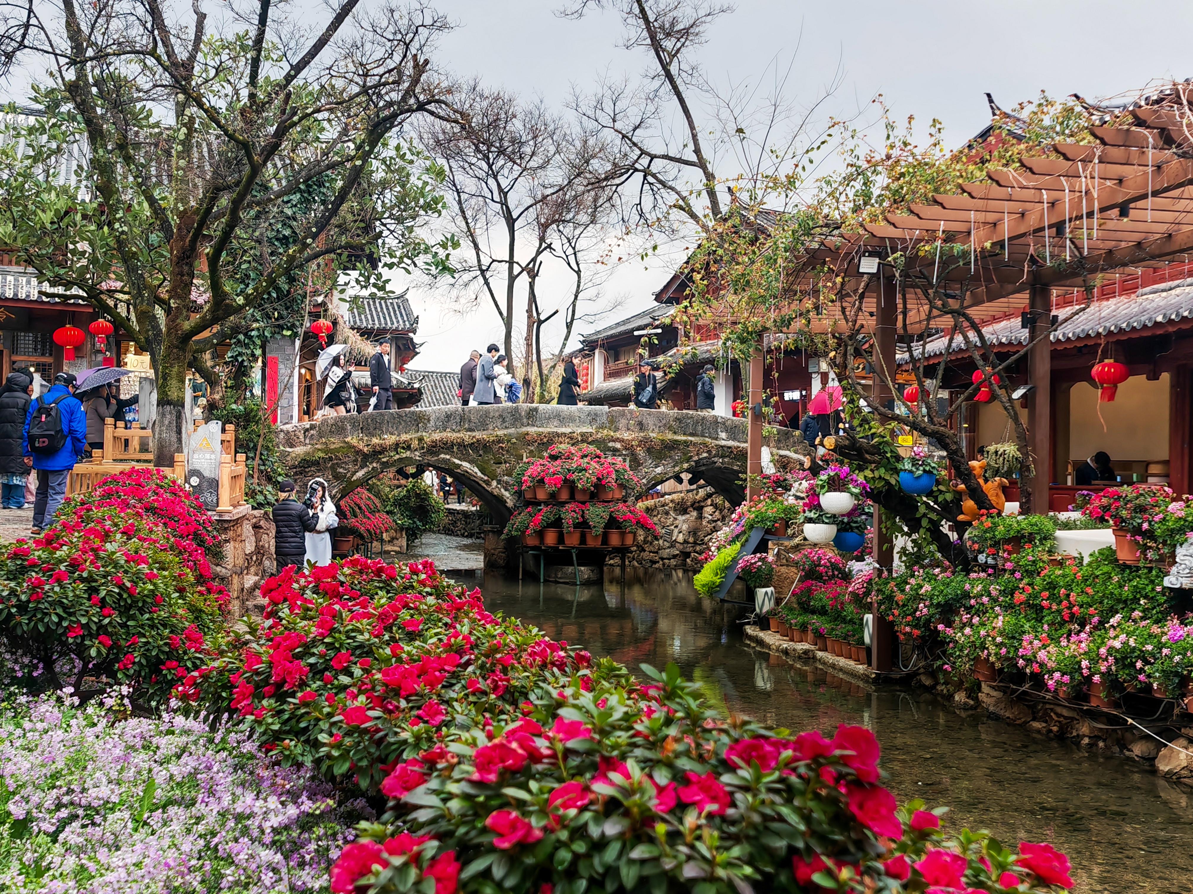 在滇西北的群山環(huán)抱中,靜臥著一座沒有城墻的古城。流水潺潺穿街繞巷,青石板路蜿蜒如詩,納西古樂悠揚(yáng)回蕩,這里就是麗江古城。