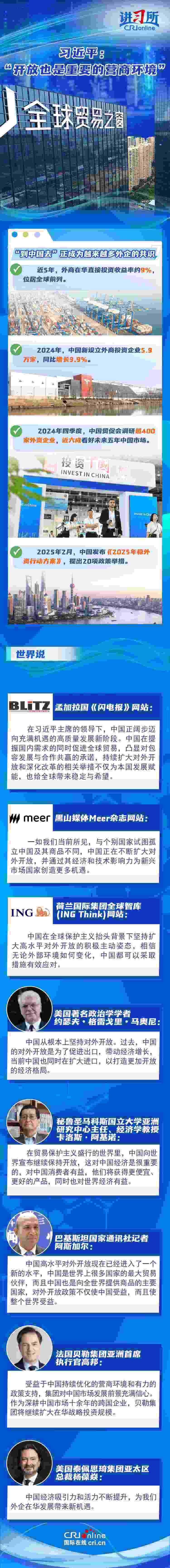 “中國開放的大門不會關閉,只會越開越大?!比ツ?2月,中國將“擴大高水平對外開放,穩(wěn)外貿(mào)、穩(wěn)外資”列為今年政府重點任務。新年以來,隨著政策紅利持續(xù)釋放,外資不斷用行動為中國投下“信心票”:德國光電行業(yè)巨頭蔡司宣布將在上海購地自建大中華區(qū)總部園區(qū),意大利百旺集團亞洲總部暨新工廠在蘇州高新區(qū)開業(yè),日本豐田汽車決定在華獨資設立雷克薩斯純電動汽車及電池的研發(fā)和生產(chǎn)公司……在他們看來,中國持續(xù)優(yōu)化營商環(huán)境、擴大高水平開放,經(jīng)濟吸引力和活力不斷提升,不僅為中國發(fā)展賦能,也給全球帶來穩(wěn)定與希望。
