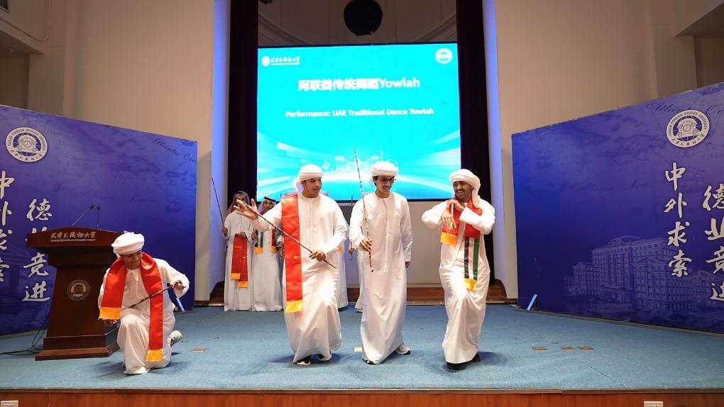 天津外國語大學(xué)的校園里,海棠盛開,綠意盎然。在此次交流學(xué)習(xí)項目的開班儀式上,中阿兩國學(xué)生代表以精彩演出互致青春問候:中國民族樂器齊奏《云之南》、中阿雙語演唱《我們都一樣》、節(jié)奏明快的阿聯(lián)酋傳統(tǒng)舞蹈點(diǎn)燃活動現(xiàn)場……