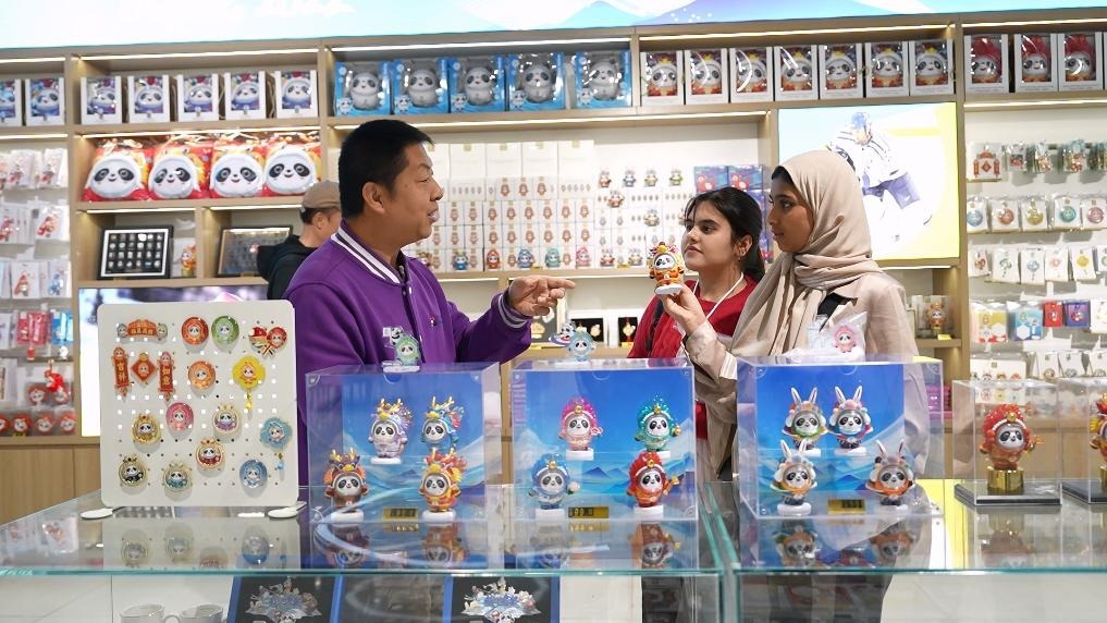 在第一站北京,她已給阿聯(lián)酋的親友準(zhǔn)備了不少禮物:中華美景冰箱貼、中式小帽子、大熊貓鑰匙扣、印有長城圖案的杯子和紀(jì)念幣……在北京奧運(yùn)博物館紀(jì)念品商店,她頭一次接觸中國潮玩,對憨態(tài)可掬的盲盒玩偶“龍墩墩”愛不釋手。