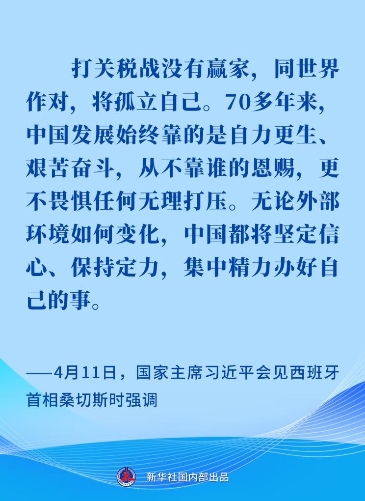 “打關(guān)稅戰(zhàn)沒有贏家,同世界作對,將孤立自己。70多年來,中國發(fā)展始終靠的是自力更生、艱苦奮斗,從不靠誰的恩賜,更不畏懼任何無理打壓。無論外部環(huán)境如何變化,中國都將堅定信心、保持定力,集中精力辦好自己的事?!?/p>