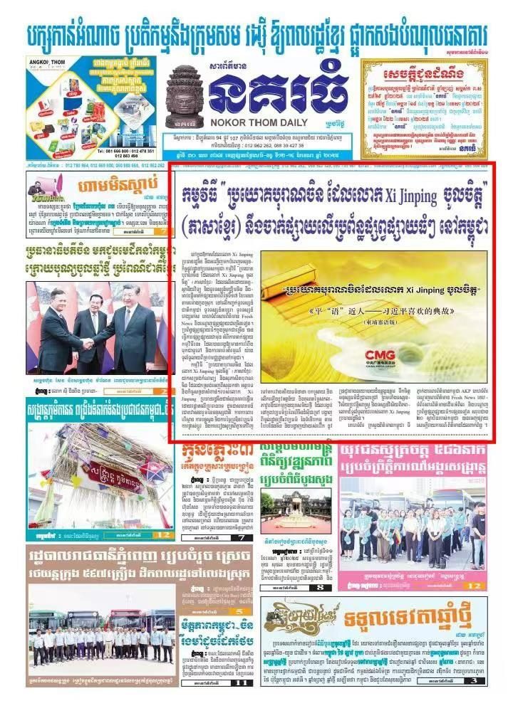 4月12日至17日,《柬華日?qǐng)?bào)》《大都市報(bào)》等當(dāng)?shù)貓?bào)紙刊發(fā)節(jié)目播出預(yù)告消息。文章指出,《平“語(yǔ)”近人——習(xí)近平喜歡的典故》(柬埔寨語(yǔ)版)是一把讀懂中國(guó)高質(zhì)量發(fā)展內(nèi)在邏輯的“金鑰匙”,相信柬埔寨受眾可以通過(guò)這些中國(guó)古籍和經(jīng)典名句加深理解中華優(yōu)秀傳統(tǒng)文化所蘊(yùn)含的新時(shí)代內(nèi)涵和全球化價(jià)值,了解習(xí)近平主席治國(guó)理政思想和新時(shí)代中國(guó)的發(fā)展戰(zhàn)略。