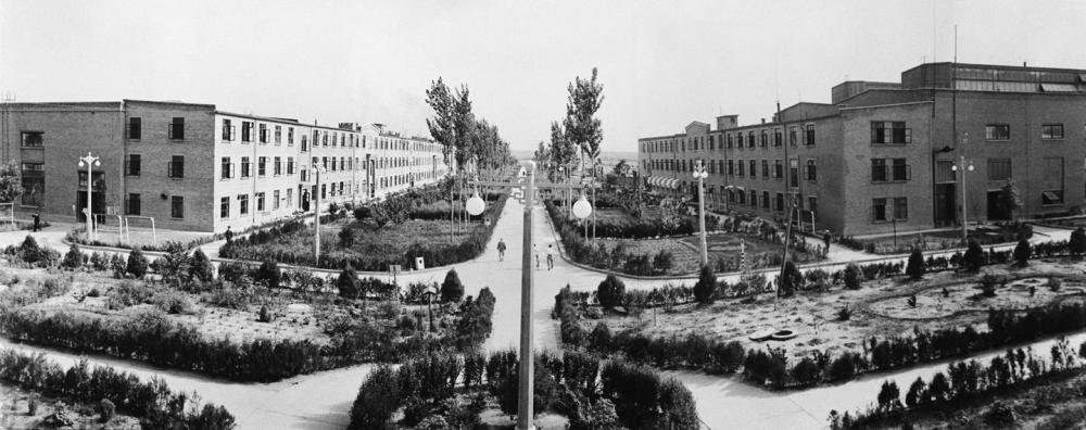 這是20世紀(jì)50年代拍攝的初創(chuàng)時(shí)期的洛陽(yáng)軸承廠廠房一角。