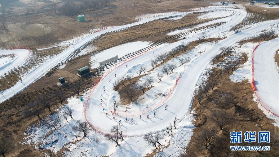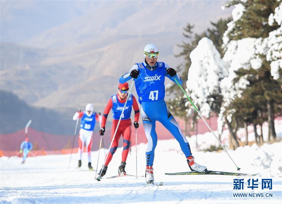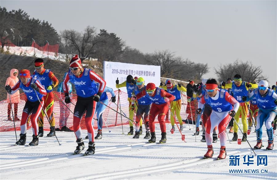 1月11日至1月15日,2018-2019年度全國(guó)青少年越野滑雪錦標(biāo)賽在內(nèi)蒙古烏蘭察布市涼城縣岱?;﹫?chǎng)舉行。這是選手在青年組男子30公里集體出發(fā)(自由技術(shù))比賽中(1月12日攝)。新華社記者彭源攝