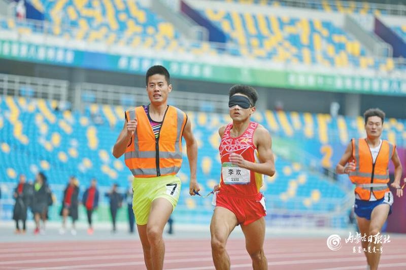 10月27日,內蒙古盲人運動員李歡同他的領跑員楊愛瑞獲得男子800米t11級銅牌。