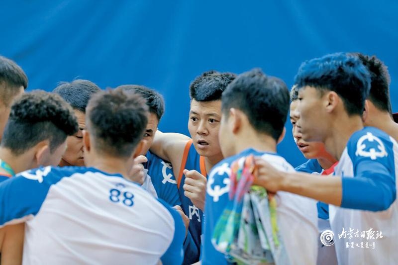 內蒙古聾人籃球隊隊友們互相加油打氣。
