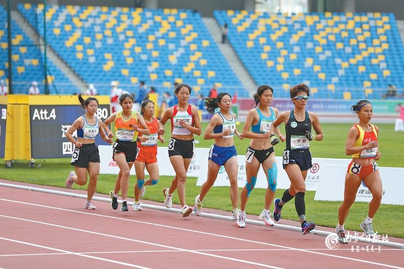 10月23日,內蒙古運動員姜迎弟(左三)在女子萬米聽障比賽中與各路高手角逐。