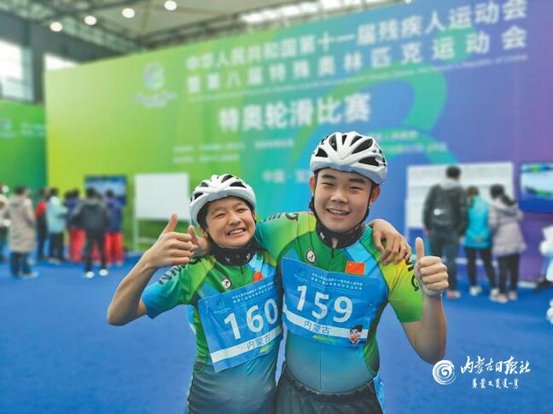 10月27日,特奧輪滑比賽16—20歲組男子2×200米接力比賽中,內蒙古運動員閆俊杰、趙鑫格獲得金牌。