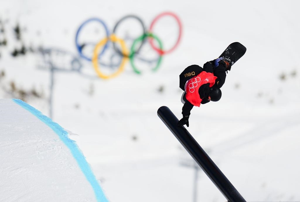 2月7日,中國選手蘇翊鳴在比賽中。新華社記者吳壯攝