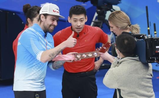 中國組合隨后也收到了美國隊(duì)回贈的徽章