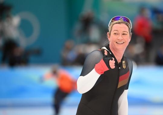 沖過速度滑冰女子3000米終點(diǎn)線時(shí)