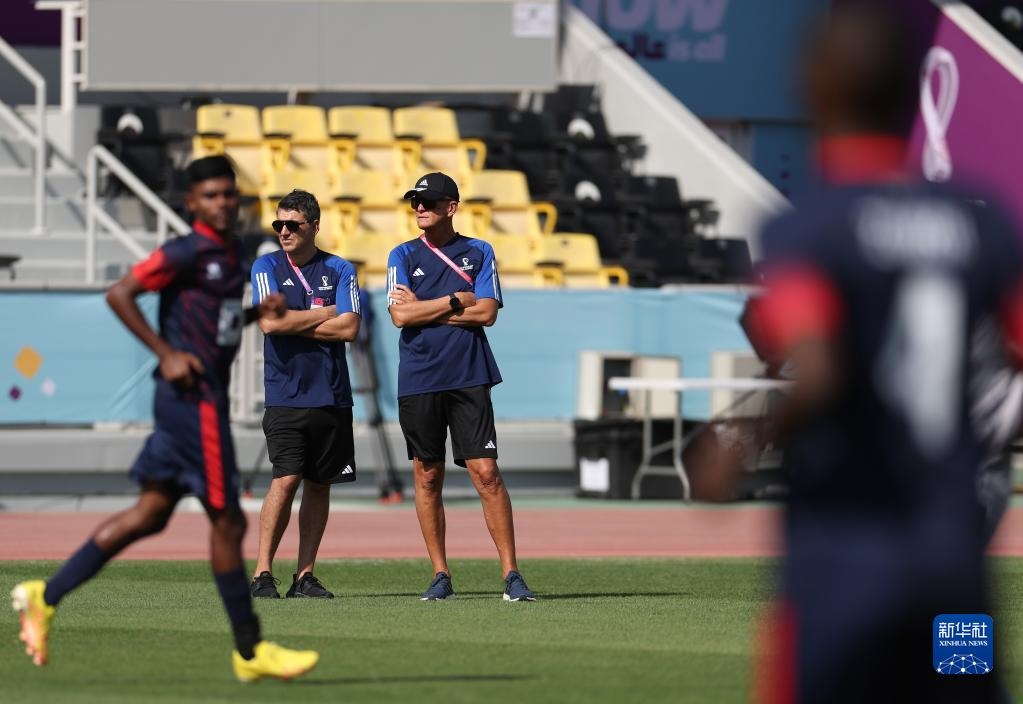11月18日,國際足聯(lián)裁判委員會主席皮耶路易吉·科利納(后右)觀看訓(xùn)練。新華社記者 賈浩成 攝