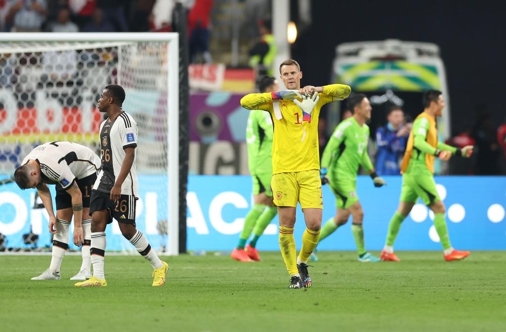 11月23日,德國隊諾伊爾(前)在比賽后。新華社記者潘昱龍攝