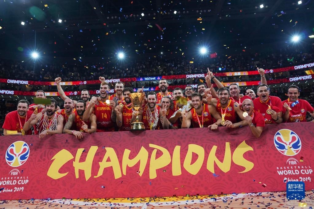 這是2019年9月15日,西班牙隊(duì)在國(guó)際籃聯(lián)籃球世界杯奪冠后慶祝。新華社記者 鞠煥宗 攝