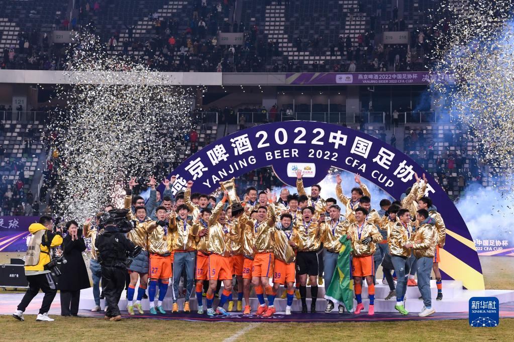 當(dāng)日,在江蘇蘇州舉行的2022中國足協(xié)杯決賽中,山東泰山隊(duì)以2比1戰(zhàn)勝浙江隊(duì),奪得冠軍。